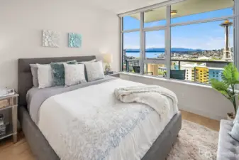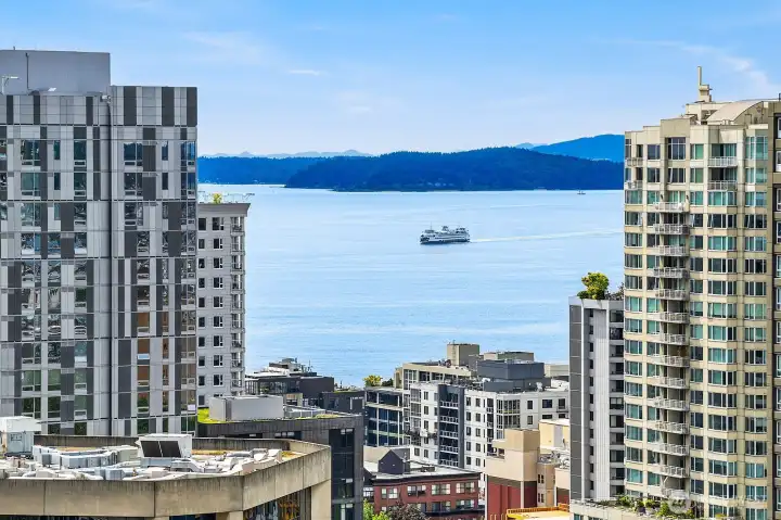 Stunning views of the Sound, Space Needle and Olympics await you in this coveted Insignia condo! Its open layout features full-length windows and luxurious finishes like engineered hardwoods, quartz countertops, and Bosch appliances. Gather in the integrated living and dining areas, step out for spectacular views on the balcony, or watch the city lights sparkle from your view bedroom. Incredible amenities are just an elevator ride away. Rated a Walker’s Paradise (99/100)—you can stroll to world-class dining, shopping, Pike Place Market, the waterfront, parks, and the South Lake Union Streetcar. Reserved garage parking and NO rental cap!