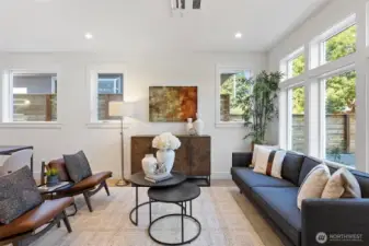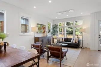 Discover contemporary living in this boutique five-home new construction community in Ballard by Roland Development. Bathed in natural light, the open-concept main level showcases thoughtful design, sleek finishes, and a welcoming entry that sets the tone. The second level features two flexible bedrooms with a shared full bath, while the top-floor primary suite offers a private, retreat-like escape. Outside, enjoy a peaceful fenced yard with low-maintenance turf—ideal for entertaining or relaxing. Complete with assigned parking and EV charging, plus easy access to transit and Ballard’s vibrant offerings—from breweries and the farmers market to Shilshole Bay—this home delivers modern comfort with unbeatable convenience.