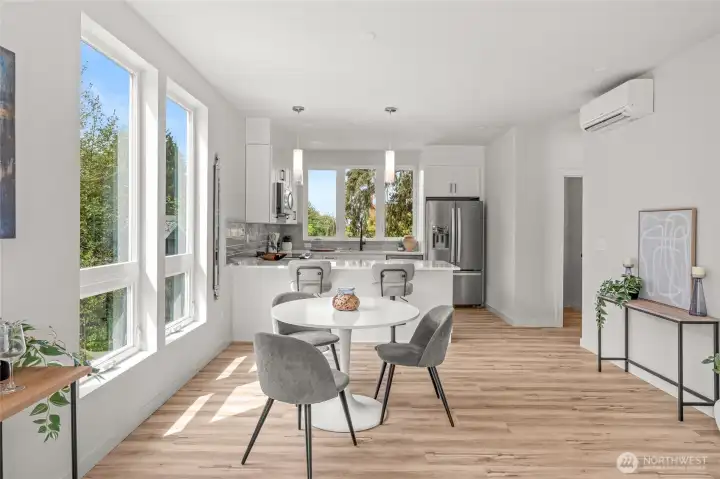 Experience luxury and convenience in this brand-new, townhome-style condominium designed by award-winning Vandevort Architects. These contemporary homes boast open-concept layouts and high-end finishes throughout. Located in Burien—an exciting, up-and-coming neighborhood—you’re just minutes from parks, top-rated restaurants, and local shops.Each home features 2 light filled bedrooms and an attached 2-car garage, complete with a dedicated EV charging outlet. The sun drenched second floor offers a thoughtfully designed living space perfect for entertaining, complete with a stylish powder room and gourmet kitchen.Big rooftop deck has views to downtowns as well as the snow capped mountains!