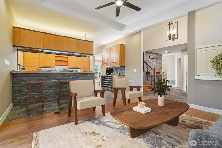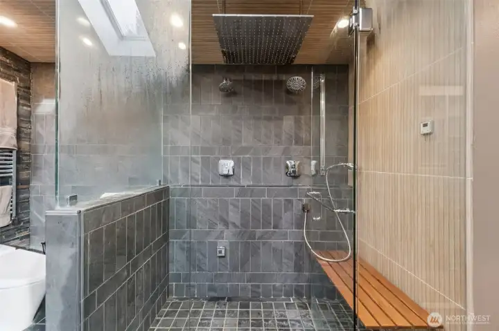 Stunningly remodeled Mirrormont home! Showcasing intricate stonework, expansive windows, and beautiful hardwoods throughout. The custom kitchen is a chef’s delight, featuring slab granite counters, elegant stone accents, built-in appliances, and a welcoming cooking bar—perfect for gatherings and everyday meals. The main floor offers a spacious living room, a four-person office, a formal dining room, and a cozy family room. Downstairs, the daylight basement provides a huge bonus/flex area and a convenient half bath. Upstairs, you’ll find three generous bedrooms and a massive bonus room. Retreat to the luxurious primary suite, complete with custom walk-in closets, skylights, heated floors, a heated soaking tub, bidet, towel warmer, and an oversized two-person steam shower with a relaxing bench—your own private spa experience. Additional highlights include an EV charger, 7.2 kWp solar panels, a 98% efficient furnace, tankless water heater, mini splits, a new roof with transferable warranty, natural gas generator with ATS, and RV parking with hookups. Tucked away at the far end of the neighborhood, privacy abounds—making this your own secluded retreat. The property is adorned with exotic plants that bloom year-round, a flat lawn for play, and is fully fenced to keep pets safe. Enjoy the enchanting greenhouse, multiple patios and decks, and a balcony off the expansive primary bedroom. You’ll feel worlds away, yet still be in Issaquah… Amazing