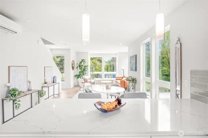 Experience luxury and convenience in this brand-new, townhome-style condominium designed by award-winning Vandevort Architects. These contemporary homes boast open-concept layouts and high-end finishes throughout. Located in Burien—an exciting, up-and-coming neighborhood—you’re just minutes from parks, top-rated restaurants, and local shops. Each home features 2 light filled bedrooms and an attached 2-car garage, complete with a dedicated EV charging outlet. The sun drenched second floor offers a thoughtfully designed living space perfect for entertaining, complete with a stylish powder room and gourmet kitchen.Big rooftop deck has views to downtowns as well as the snow capped mountains!