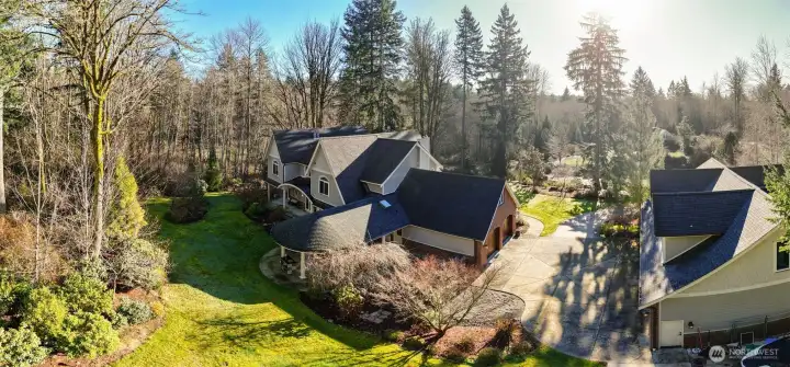 Stunning luxury estate with no expense spared. Tucked in a quiet, gated neighborhood surrounded by nature & private trails. Just a few mins from the Southworth ferry, this architecturally striking home showcases only the most premium features & meticulous craftsmanship. Luxury details include hand-scraped hardwood floors, custom millwork, exquisite stonework, & high-end appliances that elevate the interior, while the soaring ceilings enhance the spacious layout. Enjoy a private theater, entertainment-sized covered deck & both attached & detached garages for parking, toys & hobbies. The bonus space above the detached garage is sprawling with unlimited potential. Professionally landscaped grounds & stunning architecture - your legacy awaits.