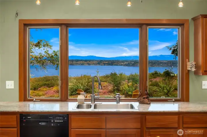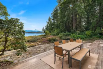 Greet each day from Madrona Bluff! A private estate at the end of a winding drive and gated entry, where nearly ten acres of curated gardens, native forest, and sweeping views provide an extraordinary retreat. Revel in panoramic vistas of Mt. Rainier, the Cascade Range, Puget Sound shipping lanes, and glittering city lights. First time on the market, this rare one level contemporary rambler showcases 3,350 square feet of exceptional architectural design and enduring quality. Vaulted ceilings, rich Brazilian cherry floors, and a natural stone Russian fireplace anchor the living spaces, while walls of windows frame the ever-changing scenery. An expansive tigerwood deck provides a spectacular setting for outdoor entertaining, with the mountain as your backdrop. The floor plan offers both formal and casual dining areas, indoors and out. At the heart of the home, the kitchen features warm cherry custom cabinetry, a hanging pot holder by artist Mark Bennion, and generous workspaces. The serene primary suite enjoys garden and mountain views, as well as a spa-inspired bath with radiant heated floors. Additional baths include a full, a ¾, and a convenient WC off the mudroom. Modern comforts include a whole-house Generac generator for peace of mind, while the surrounding forest supplies the fireplace. Even your feline companions will appreciate their custom catio. Each evening brings a breathtaking finale as Mt. Rainier glows in soft light, all from your own private sanctuary.