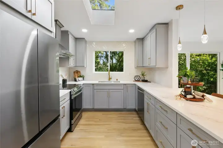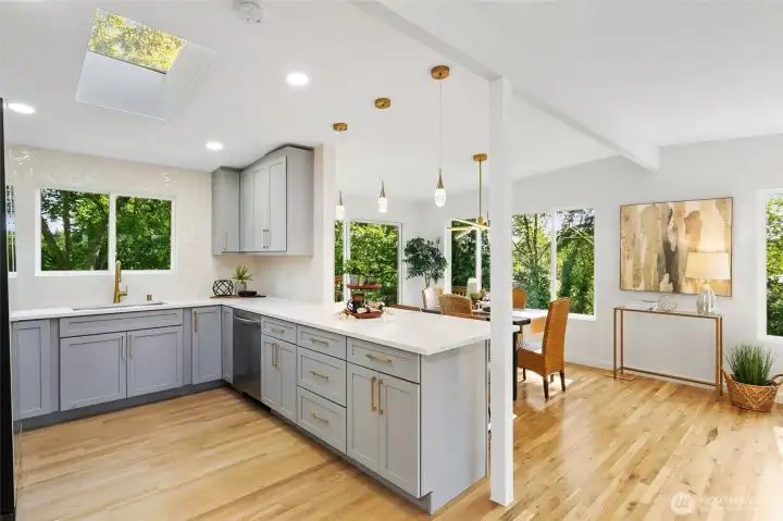 Turn-key, fully renovated Cedar Park home blending timeless craftsmanship with modern comfort! This spacious 4-bedroom, 3-bath offers 2,500 square feet of beautifully updated living space designed for today’s lifestyle. Every major system has been thoughtfully upgraded, including new electrical, plumbing, roof, windows and siding, providing peace of mind for years to come. Inside, warm oak hardwood floors and a dramatic cathedral ceiling fills the home with natural light and creates an open, airy feel. The flexible floor plan offers generous living and entertaining spaces, ideal for both everyday living and hosting. Well-appointed bedrooms and updated baths, including two master suites, feature quality finishes and reflect the care taken in this comprehensive renovation. Step outside to enjoy a deck and large, fully fenced-in backyard, perfect for entertaining, play, or future garden and outdoor living possibilities. Located on a quiet “healthy street” in the desirable Cedar Park neighborhood with easy access to parks, schools, shopping, and commuter routes. A rare opportunity to own a truly move-in-ready home with both style and substance in one of North Seattle’s most established neighborhoods.