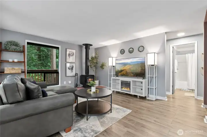 Potential assumable 3.625% loan! Your PNW oasis awaits! This 3BR, 1.75BA home sits on a lovely .5 acre lot & is packed with fresh updates. Enjoy new vinyl flooring, interior/exterior paint, hot water heater/plumbing, & new wrap-around Trex deck, perfect for wildlife spotting. The oversized, remodeled garage features a laundry rm, finished bonus rm, & office, + space for an addl. bath. The lower level offers space for a sprawling primary suite w/2nd laundry hookup, or use it as a den w/sleeping loft & plenty of storage. 220V wiring for mini splits adds convenience for future heating/AC options. Located near Gate 3, with easy access to the mailbox, bus stop, market, & access to all Sudden Valley amenities including the 18-hole golf course, marina, dog park, & more!