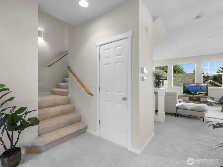Experience effortless luxury in Hawthorne, a premier Burnstead-built community perched above Woodinville Wine Country. This rare end-unit 3-bedroom, 2.5-bath home offers 1,607 sq ft of refined, light-filled living with peaceful valley views from the upper level. The home feels truly move-in ready, featuring fresh interior paint and plush new carpeting throughout. An open-concept floor plan is highlighted by vaulted ceilings and a cozy gas fireplace, creating an airy yet inviting atmosphere ideal for both everyday living and entertaining. A standout feature for townhome living: an attached 3-car garage, providing exceptional space for parking, storage, or a home workshop. The primary suite is a serene retreat with abundant natural light and a versatile flex space—perfect for a home office, reading nook, or fitness area. Step outside to your private patio, opening to a quiet, well-maintained community surrounded by acres of preserved natural space. Enjoy direct access to the Tolt Pipeline Trail and a location just minutes from Chateau Ste. Michelle, acclaimed dining, shopping, and Northshore schools, with easy commutes to Redmond and Totem Lake. The well-funded HOA covers water, sewer, landscaping, exterior maintenance, and earthquake insurance, offering true low-maintenance living. Designated as a condo, yet lives like a townhome. Turn-key, competitively priced, and nothing comparable on the market—this is a must-see Woodinville retreat.