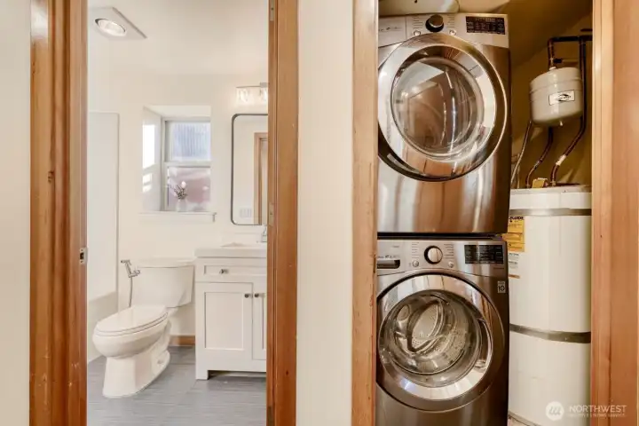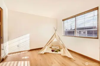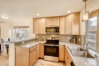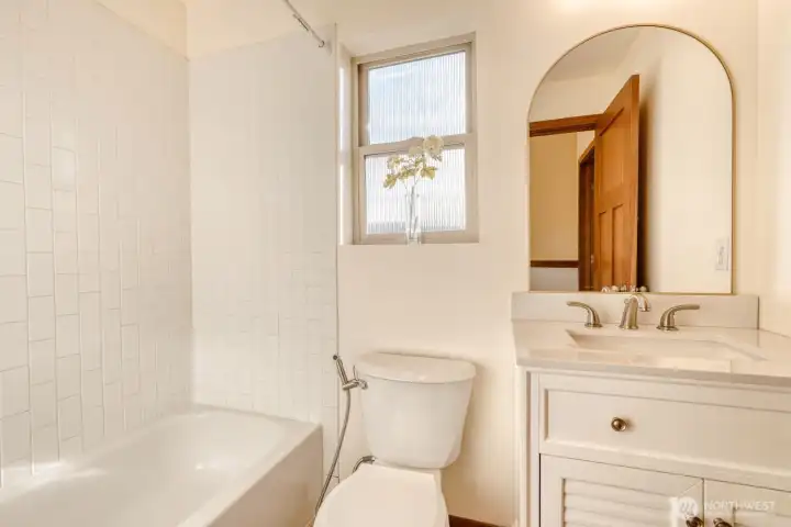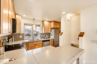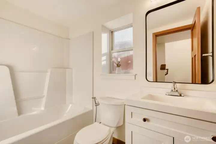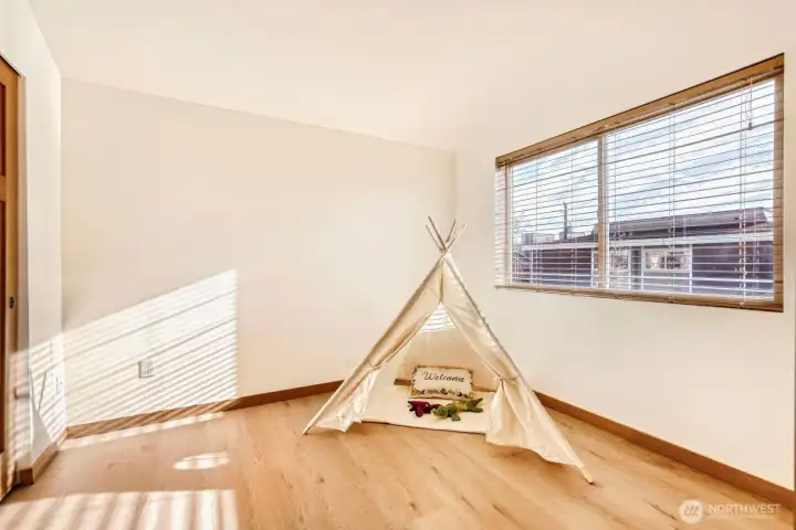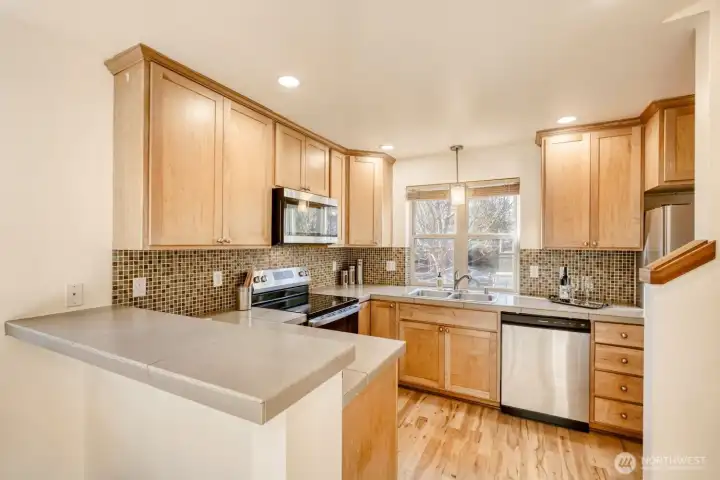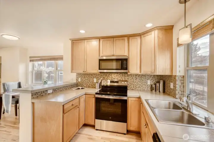 Elegant three-bedroom townhome in coveted Highland Park. This rare end NO HOA unit is thoughtfully set back from the road, offering a welcoming front yard and a private, fully fenced backyard with patio—ideal for refined outdoor living and pets alike. The main level features a light-filled, open-concept living, dining, and kitchen area highlighted by maple hardwood floors, custom built-ins, a designer tile backsplash, a stylish breakfast bar, and new stainless steel dishwasher and stove.All bedrooms and stairways have been upgraded with new luxury vinyl plank flooring, complemented by fresh interior paint throughout. The upper level offers two generously sized bedrooms with vaulted ceilings and a shared bath with a new vanity. The lower level provides a private third bedroom with a full bath featuring a new vanity, along with a utility room—perfect for guests, a home office, or flexible living. Exceptionally convenient location just 15 minutes to downtown Seattle or Sea-Tac Airport, with multiple bus lines within a short walk. Dedicated off-street parking and no short-term rental restrictions.