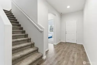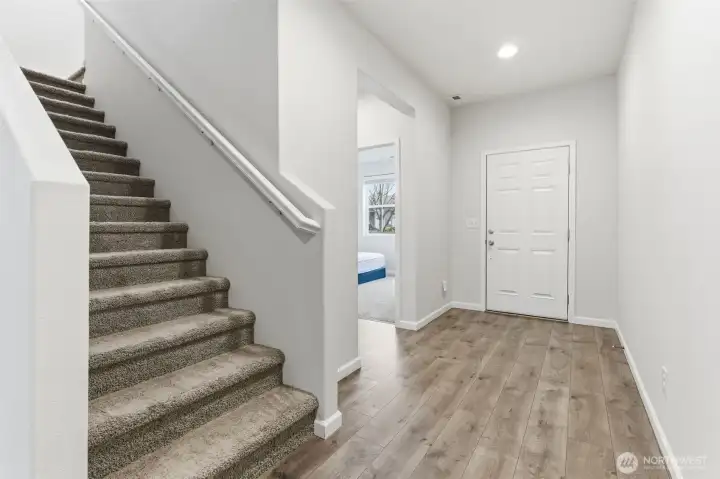 Discover the perfect blend of modern luxury and effortless convenience in the highly sought-after Munn Lake community of Tumwater. Built in 2019, this stunning 2,648 sq. ft. home features an expansive open-concept floor plan with luxury vinyl plank floors and custom built-in cabinets. The gourmet kitchen is a chef’s dream, featuring sleek quartz countertops, a large island, premium stainless appliances, a walk-in pantry, and a gas stove with a double oven. With 5 spacious bedrooms, 3 bathrooms—including a primary suite with a 5-piece bath—and a versatile upstairs open loft, there is ample room for everyone. This home is designed for peace of mind with a central heat pump and A/C, electric hybrid water tank, and a Generac generator. The finished garage boasts epoxy floors, insulated doors, and a keypad entry. Outside, the .26-acre lot backs to a peaceful green belt and features a fully fenced backyard with a 15' x 30' patio and covered outdoor entertainment space. Enjoy the easy-care yard with an automatic sprinkler system, 6 galvanized steel raised garden beds, and a storage shed with an overhead door. Located in the top-rated Tumwater School District, you are moments from I-5, JBLM, Costco, and Munn Lake walking trails. This sanctuary is a must-see—Scheduled your tour today!