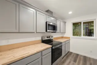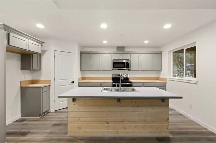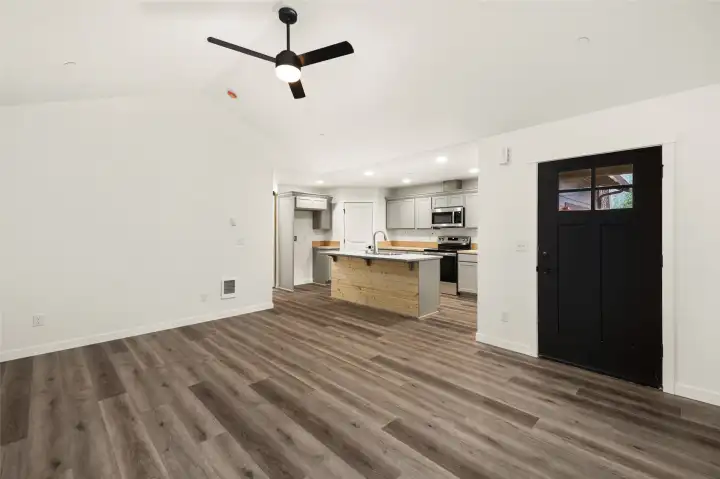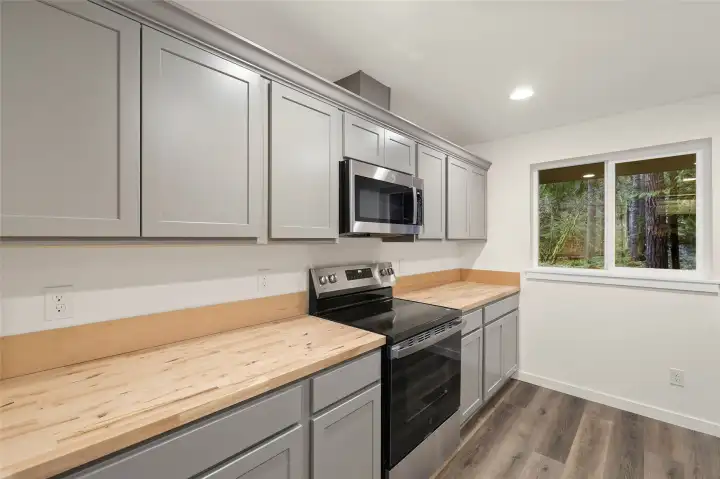 New Construction in Ashford! 2 bed 2 bath Great room concept with vaulted ceiling with fan. Kitchen with butcher block counters and island. Vinyl plank flooring thru-out. Primary bedroom with full bath. Sliding barn style door to laundry room. Mini split for A/C. One car garage with electric car outlet. Space out back wired for Jacuzzi tub. Room for RV parking. Rustic quarter acre wooded lot.