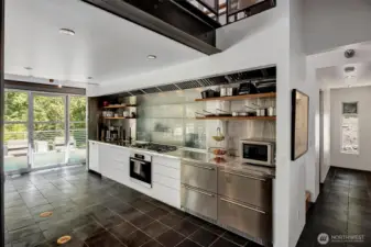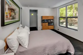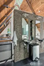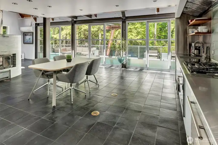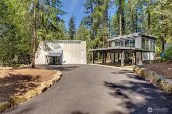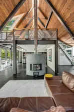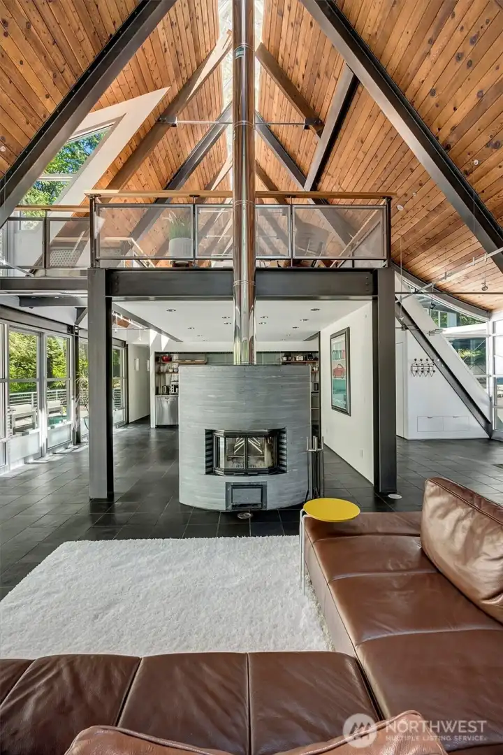As featured on Dwell Magazine’s website (July 2025), this extraordinary steel-and-glass A-frame by renowned Sandler-Kilburn Architects is a rare architectural statement, privately set on over an acre of tranquil, wooded grounds. Dramatic lines and soaring glass create a gallery-like living experience where industrial precision is softened by rich natural materials. Custom walnut cabinetry defines a refined, contemporary kitchen with new cabinetry and refrigeration, while the sculptural Tulikivi soapstone fireplace serves as a striking focal point for the main living space. The primary suite is a sanctuary, complete with a stainless steel Japanese soaking tub designed for deep relaxation. A detached steel-and-glass garage or studio with its own meter and gas heat offers remarkable flexibility for creative or guest use. Three heat sources, covered parking for four vehicles, skylights, and an EV charger complete this one-of-a-kind modern retreat.