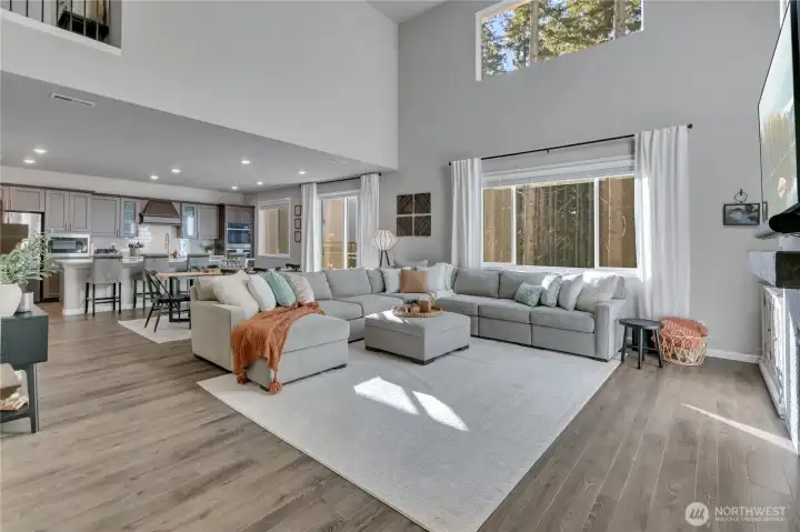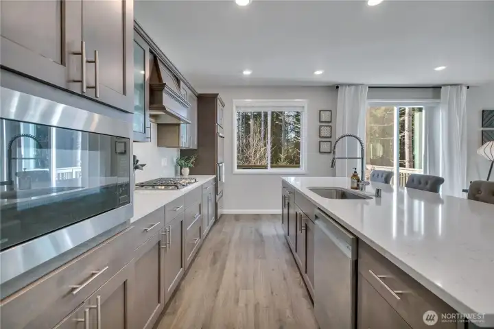 Doesn't everyone want to live in a model home? This home is it... Only 7 years young and nearly $80k in upgrades! This home dazzles with a main floor office/guest suite with full bath, open formal dining room, butler's pantry, coffee niche or wine bar that flows into chef's kitchen with quartz island, double ovens, new Bosch dishwasher, gas cooktop and custom fan. A dramatic great room anchors the home with a floor to ceiling fireplace with custom millwork and stylish tile face plus accent walls. Walk upstairs to the second seating area or office and a luxury primary suite with a glorious walk-in closet with built-in shelving, dresser and accessory display. The primary bath features a relaxing soaking tub and separate custom tiled shower and dual vanity. The additional bedrooms both have walk-in closets and the custom shelving stays and a full laundry center with linen storage. The lower level of the Whitman plan has a bedroom and 3/4 bath plus loads of additional room for endless options for work, guests, or homeschool, etc. Enjoy the covered patio, plus the maintenance free artificial turf, terraced gardens and keyhole garden spot and storage niche for gardening tools! Backs up to the treed greenbelt for added privacy and forest views! Lennar Smart-home has upgraded technology package, A/C just installed, new carpet in 2026, life-time Leaf Filter gutters and tons of garage add-ons for storage/bikes! Rich in upgrades, this move-in ready home shines with exquisite detail!