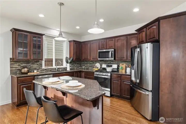 Beautiful Norris Resale in Highland at Cedar Downs. Thoughtfully designed, this home offers a perfect blend of comfort and functionality. The main floor features, a spacious living room with a cozy gas fireplace, creating a warm and inviting atmosphere. A main floor bedroom and full bath provide flexibility for guests or multi-generational living, while the convenient utility room adds to the home’s practicality. Upstairs, you’ll find a luxurious primary suite complete with a 5-piece en-suite bathroom, offering a private retreat to unwind. Three additional guest bedrooms and a full guest bath provide plenty of space for all. Upstairs bonus offers perfect space for work or play! This home is perfectly situated in a sought-after neighborhood, close to parks, trails, and all the amenities Maple Valley has to offer. Pre Inspected for peace of mind. A/C.