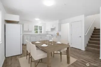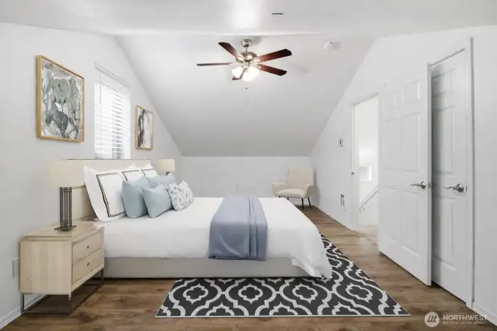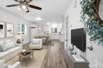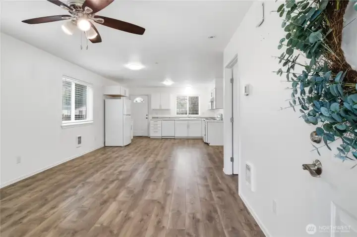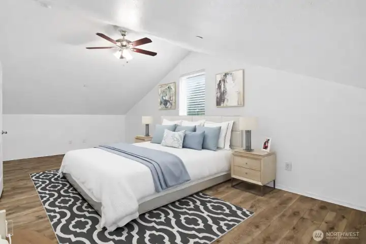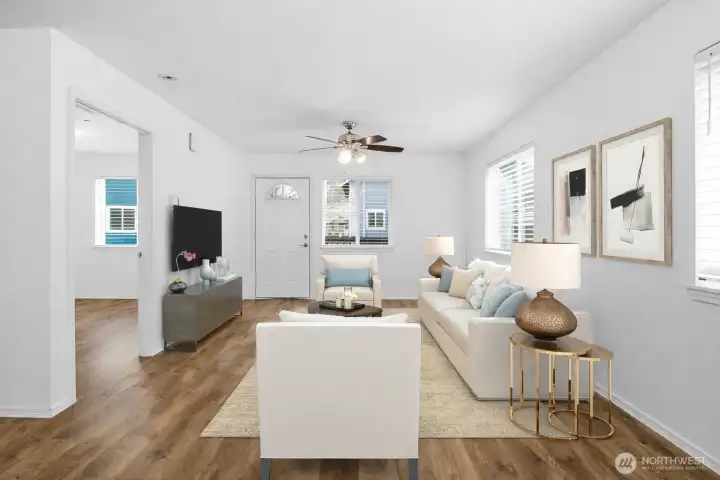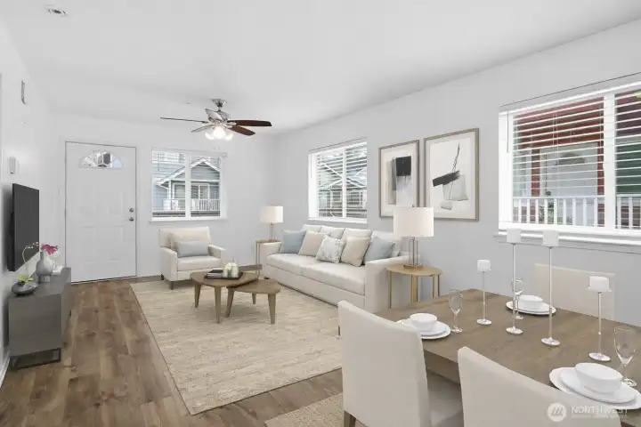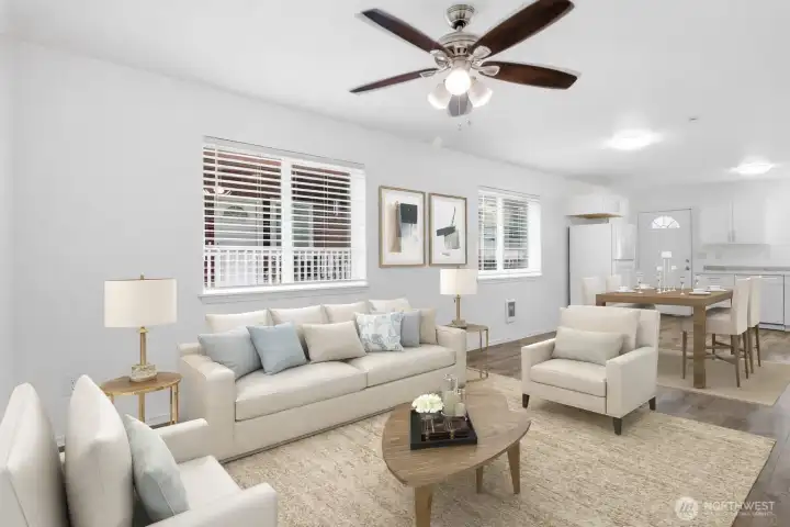 Think you can’t find an adorable AND affordable home in Lacey anymore? This three-bedroom home built in 2014 proves otherwise. Tucked into a charming cottage-style community, this 1600sqft home offers a central location with easy access to freeways, shopping, dining, healthcare, JBLM and the Chehalis Western Trail is only a block away. Inside, you’ll find a bright open-concept layout with durable and attractive laminate flooring, a functional updated kitchen with nearly-new appliances. Complimented by a sizable main-floor bedroom (or office), full bath, and dedicated laundry with like-new washer and dryer included. Upstairs features two oversized bedrooms with vaulted ceilings, ceiling fans and walk-in-closets, offering generous storage space. Enjoy friendly outdoor living with a charming covered front deck, storage shed, room to garden, community playground and a convenient back entrance. Low HOA dues and North Thurston Schools make this an incredible value for the price—don’t miss it!