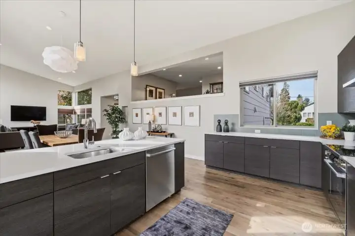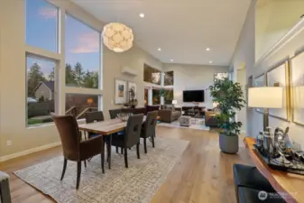 Architecturally striking with dramatic ceilings and walls of glass, this beautifully maintained Green Canopy custom home lives like new construction with high-end finishes throughout. The open-concept design is filled with natural light and offers seamless indoor-outdoor flow, creating an ideal setting for both everyday living and entertaining. The sleek chef’s kitchen features Bosch appliances, generous storage, and a large island that anchors the main living and dining areas. The oversized primary suite offers a private retreat with a spa-inspired bath, custom tile work, and a large walk-in closet. A versatile loft provides flexible space for a home office or potential fourth bedroom. The lower level includes two additional bedrooms with a Jack and Jill bath and a separate family room, well suited for guests or multi-generational living. A fully finished detached DADU is heated, powered, and built to a high standard, offering flexibility as a private office, gym, guest retreat, or potential income-producing space. Set on expansive, usable grounds with manicured landscaping, the property features paver patios and two decks designed for relaxation and entertaining. A long driveway leads to a detached finished garage with additional storage. Built 4-Star Green, the home emphasizes energy efficiency and sustainable design.