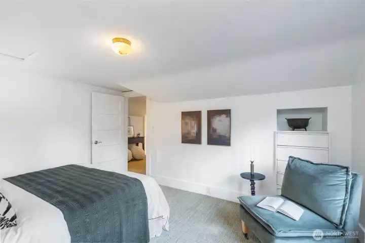 Dream of a cottage in the countryside with room to grow, income potential and world class amenities strolling distance in every direction? You've arrived. Nestled into a leafy curve on Olmsted-designed Ravenna Blvd, this 1924 Craftsman emanates sweet bungalow vibes from behind its picket fence. Inside, a generous, versatile floorplan unfolds - much larger than you'd guess and bathed in natural light on even the grayest days. Craftsman charisma abounds in the entry and luminous living and dining rooms. Main floor flex room flows out to expansive deck - a dreamy spot for a long dinner or sunny morning cup (bring it back from Seven Coffee, 1/2 block away!) Updated kitchen, full bath and bedroom round out the main floor. Upstairs, find 3 more bright bedrooms and a luxurious full bath. The enormous, finished basement is a rare treat with copious storage and optionality. With hidden nooks and cubbies across all three floors, this home offers irresistible spaces for imaginative rainy-day play. Charming ADU (permitted, separately metered!) has a solid rental history and is ready for tenants, au pair, or guests. Bonus: a substantial shed with power could become an office or studio! Mature plantings, alley access, EV ready parking, enviable Ravenna location and strong neighborhood community.