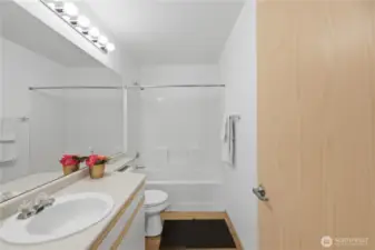 Charming first-floor condo in the gated Windsong Arbor community. Ideally located just minutes from Hwy 167 with easy access to schools, shopping, dining, and transit. This light-filled home features an open, functional floor plan, a private patio, and an updated kitchen with built-in water filtration system at the sink. Recent upgrades include fresh interior paint, brand-new laminate flooring throughout the main living areas, and new carpet in both generously sized bedrooms. The primary suite offers an ensuite bathroom with a walk-in shower and built-in bench. Additional features include a full-size washer and dryer, one reserved carport space, and extra storage. Enjoy secured, gated community & amenities such as a clubhouse, fitness center, gathering space, sports court, and pet-friendly areas. HOA dues include water, sewer, garbage, and gas for the fireplace.
