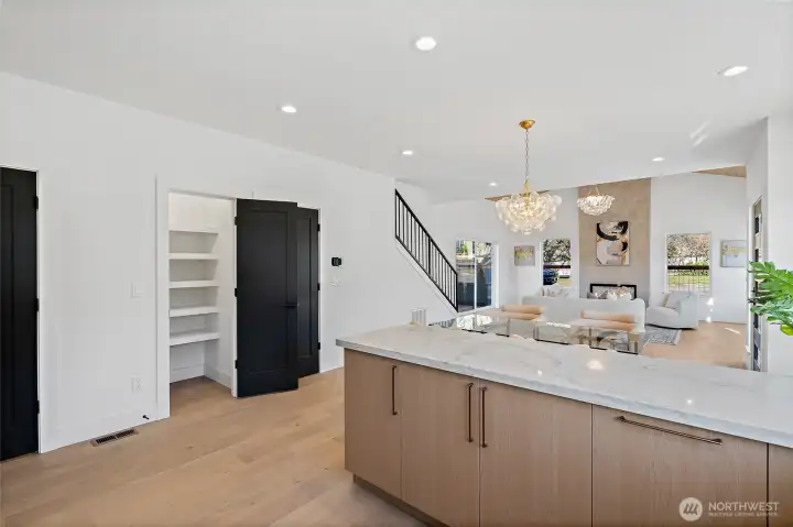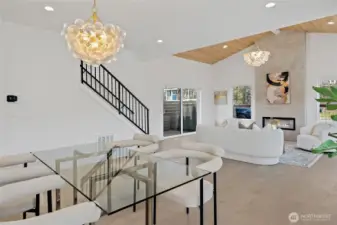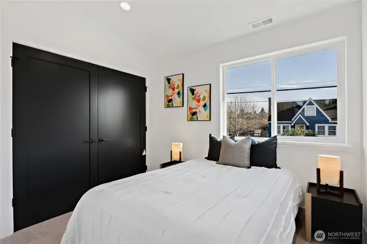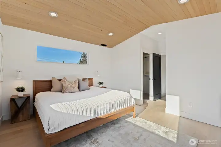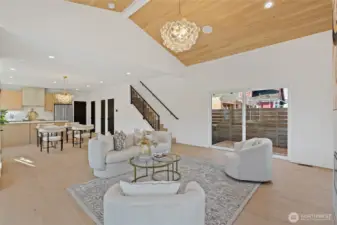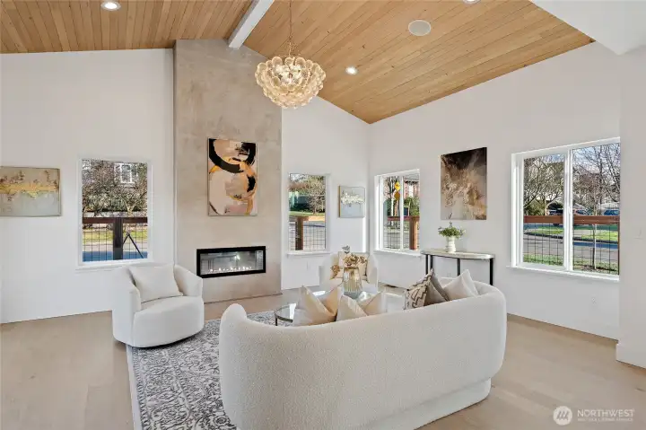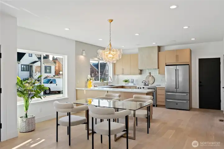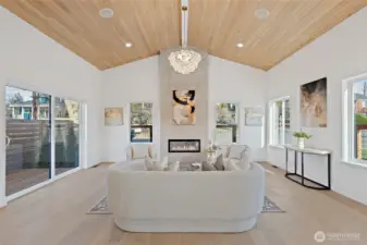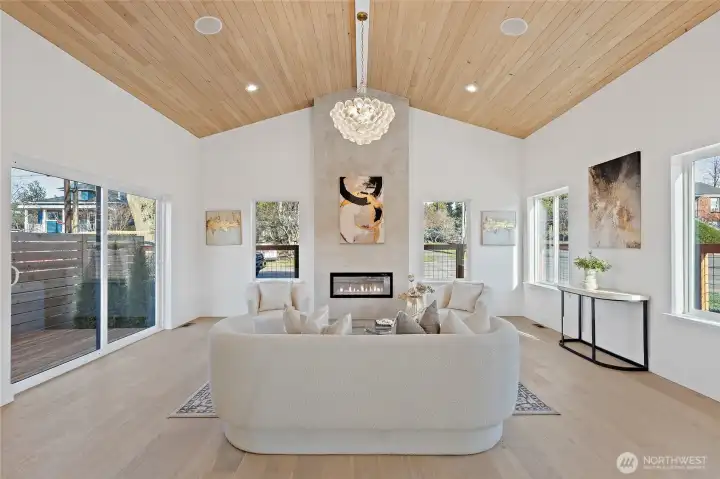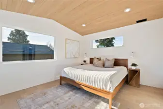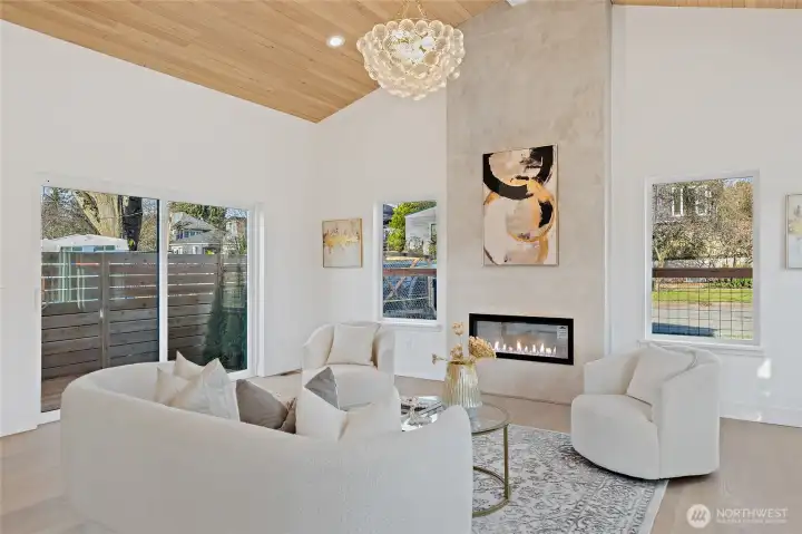 Tucked away on a quiet street in Ballard, this thoughtfully designed home blends clean modern finishes with everyday comfort. Engineered hardwood floors run throughout, paired with warm hemlock tongue-and-groove ceilings that add texture and character. The open main living areas are anchored by concrete-plastered fireplaces and a sculptural kitchen hood, giving the space a refined, architectural feel. The kitchen is outfitted with Bertazzoni appliances and built to function as well as it looks. A ducted heat pump provides efficient heating and cooling year-round, while built-in ceiling speakers on the main floor make entertaining easy. Upstairs you'll find two bedrooms sharing a full bathroom and the large primary en-suite with vaulted ceilings, a walk-in close and four-piece bathroom with heated floors for a true spa-like touch. Quiet and private, yet just minutes from Ballard’s shops, dining, and everyday conveniences, this home offers a rare balance of design, comfort, and location.
