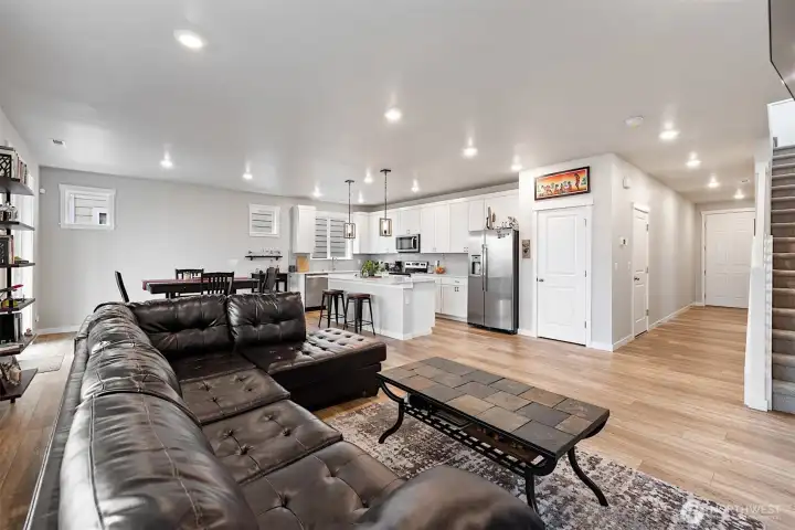 Welcome to this beautifully maintained 3 bedroom, 2.5 bath contemporary home in Puyallup. Built in 2021, it offers 2,130 square feet of thoughtfully designed living space and presents in near new condition. The home feels fresh, clean, and lightly lived in from the moment you walk in. An open main level floor plan brings in great natural light and highlights the modern finishes throughout. The layout works well for everyday living and entertaining. Upstairs, all three bedrooms are located together along with a bonus room that is currently used as a casual hangout area, ideal for a media room, play space, or home office. From the covered back porch, the outlook beyond the fully fenced yard creates a calm, open feel that is hard to find in newer neighborhoods. A heat pump with AC provides efficient, year round comfort. Homes this new, this well kept, and this easy to move into do not come up often. If you want a home that still feels new without the wait, this one is worth seeing in person.