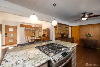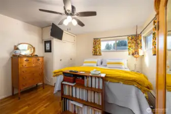 This Mid Century modern brick home won't last long! It has been lovingly maintained & thoughtfully updated while keeping all the original character. This home sits on a large corner lot with lots of parking. Enter in from the covered front porch. The open plan welcomes you in the entry into the center of the home. The sunken living room has so much character with a fireplace, coved ceilings, built in planter & wooden valences with lights. The updated kitchen has lots of storage, qranite counters w/an undermount sink, a dishwasher and gas range. There is built-in shelving nook for your collection in the kitchen. There is a cozy den off of the kitchen with wood paneling and a built-in cupboard with glass insets. There is a large bathroom with the original scalloped tub that was refinished and lots of original windows to let in the natural light. Two light filled bedrooms are at the end of the hall. The washer and dryer area is off the kitchen with some additional storage. The garage is over 500 sq' with lots of built in pine closets for storage. The driveway is spacious w/lots of room for your toys/guests to park. In the backyard you have a garden space & storage shed. Enjoy the outdoor covered area that is over 250 sq' & ready for entertaining rain or shine. This type of home does not come along very often & is hard to find! Don't wait to come and take a look!