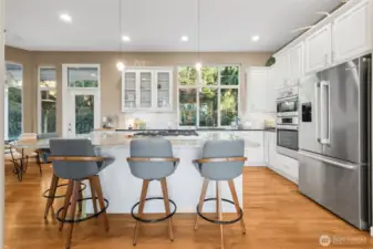 So rare to find a highly elegant, newer home in the sought-after south Issaquah neighborhood of Mirrormont! The main level is a true showpiece, w/stunning architectural details in the living room including white gorgeous columns, high ceilings & large windows flooding the space w/light + amazing, curved staircase leading to upper floor. Kitchen has been thoughtfully remodeled w/white cabinetry, granite & quartz counters, accented by white stone & new lighting. Large island seats 4+. With ample room for multiple cooks, the kitchen is the heart of the home, open to daily hanging-out room w/gas fireplace providing cozy evenings & French doors to balcony w/sunset views. Spacious bonus room-expanded to accommodate a pool table—features wet bar & endless flexibility for entertaining, hobbies or media use. Upstairs, the luxurious owner’s suite is a retreat of its own -French doors lead to private balcony, shared gas fireplace w/adjacent bath includes soaking tub, large tiled shower, dual-sink white vanity, water closet & generous walk-in closet. A huge rear patio offers multiple gathering areas + covered space for year-round use. Extensive landscaping- mature terraces, outdoor lighting, natural stone stairs to an upper flat lawn w/firepit—perfect for enjoying sunset views & glass of wine! Huge 3-car garage wired for generator + fits a boat! All this in a quiet cul-de-sac, Issaquah Sch Dist + Mirrormont community w/year-round social events & optional pool, tennis & country club.