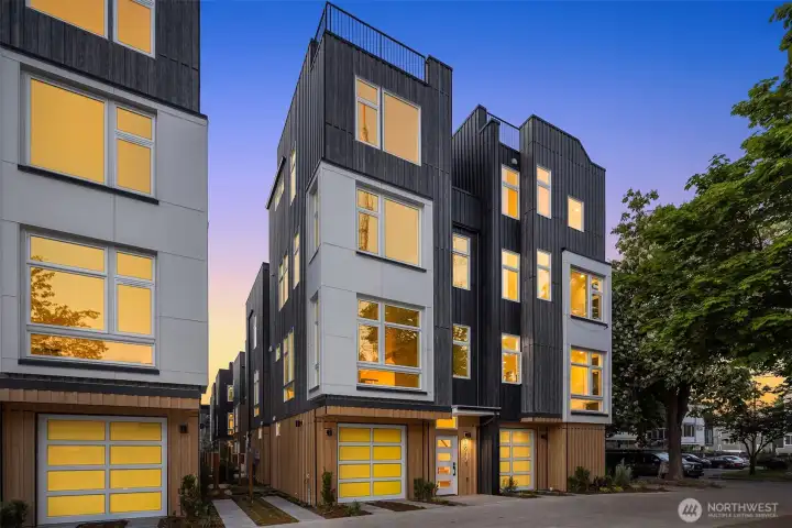Discover 24 on Howell, a premier collection of 24 modern townhomes nestled in the heart of Seattle’s vibrant Capitol Hill. This home offers attached EV-ready garage and guest powder room on main floor. Second level open concept living room and kitchen provides light-filled entertaining space. Penthouse primary suite for ultimate privacy. These thoughtfully designed homes offer unmatched urban living with desirable amenities. Each home features a spacious rooftop deck, perfect for enjoying panoramic city views, while select residences also boast private yards. Near to Trader Joe's, Central Co-op, extensive eateries and nightlife! Photos are of a similar home.