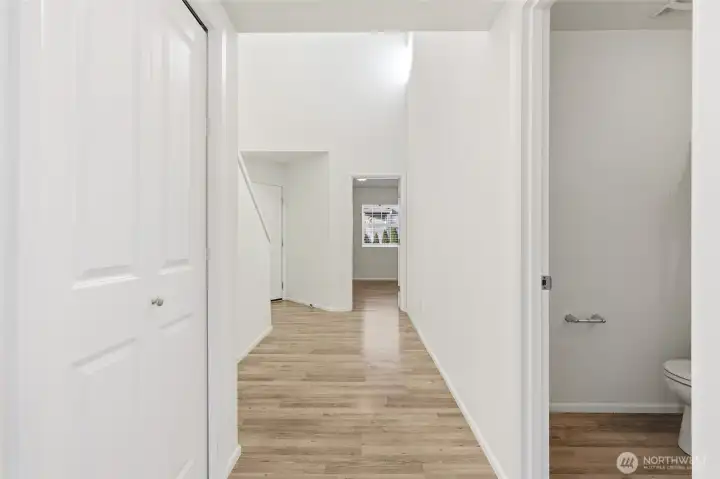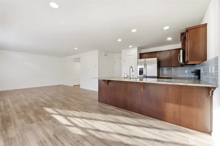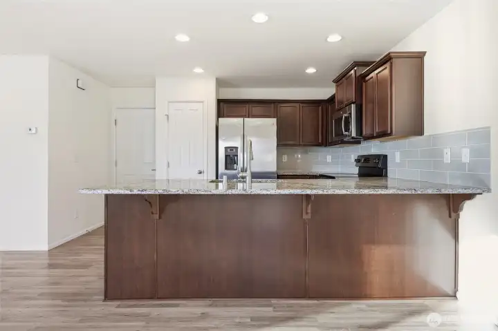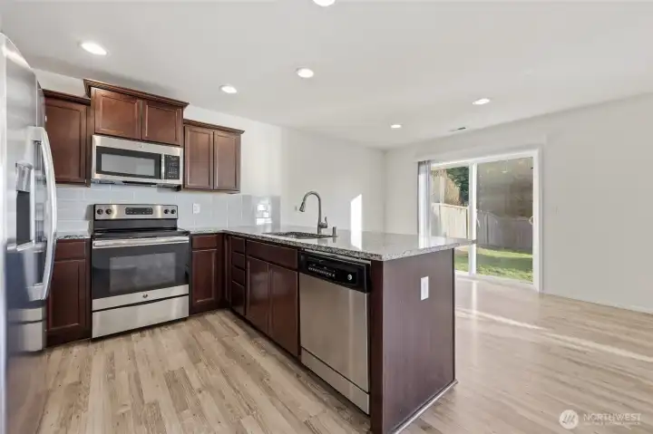 Beautifully maintained and move-in ready, 4-bedroom, 2.25-bath home offers the perfect blend of comfort, functionality, and modern style. Step inside to an impressive two-story entryway that immediately sets the tone for the spacious and welcoming open floor plan. The main level features a bright and airy living, dining, and kitchen area ideal for everyday living as well as entertaining guests along with a convenient main-floor bedroom that’s perfect for guests, a home office, or multi-generational living. The chef-inspired kitchen shines with sleek stainless steel appliances, including an electric flat-top range and oven, built-in microwave, dishwasher, and side-by-side refrigerator/freezer, plus a generous pantry. Elegant granite countertops and a convenient breakfast bar make this space both stylish and practical. Upstairs, you’ll find three well sized bedrooms, a full bathroom, and a separate utility room with washer and dryer hookups. The private primary suite serves as a relaxing retreat, complete with its own bathroom and an expansive walk-in closet. Built in 2017, this 1,837 sq. ft. home also features a 2 car garage, tankless water heater, and forced air heating for year-round comfort. Outside, the fully fenced backyard provides ample space for entertaining, play, or quiet relaxation. Located in the sought after North Thurston School District with easy access to I-5, JBLM, shopping, dining, and local parks, this home truly has it all.