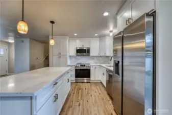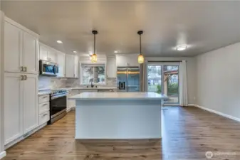 Lovingly cared for and beautifully updated, this home truly shines with pride of ownership and is absolutely move-in ready. The open main level feels warm and inviting, designed for everyday comfort and easy entertaining. The bright kitchen features quartz countertops, stainless steel appliances, modern cabinetry, and a generous island that naturally becomes the heart of the home. Fresh interior paint, updated flooring, stylish fixtures, and a cozy electric fireplace create a clean, cohesive space that feels both polished and welcoming. The lower-level bonus area offers wonderful flexibility, ideal for movie nights, hosting guests, a home office, or simply enjoying extra living space. Thoughtful updates like the newer heat pump and durable metal roof provide efficiency and peace of mind. Outside, enjoy a large, fully fenced backyard that’s tidy, usable, and ready for relaxing evenings, gardening, pets, or play. Conveniently located near shopping, schools, and daily amenities, with easy access to Hwy 16 and the Southworth ferry for commuting. Clean, comfortable, and truly turnkey, this is a home you can move into and enjoy from day one.
