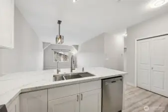 Stunning top floor, beautifully updated condo located in the highly desirable Issaquah Highlands community. This 2 bedroom, 1 bath updates features: complete kitchen remodel with quartz counters/tile backsplash, new white cabinets, SS appliances, laminated wood floors throughout, remodeled full bathroom, tons of storage plus home comes with one parking space. This is a great location close to all the amenities of the Issaquah Highlands including shops, restaurants, movie theatre, and Park and Ride. A commuters dream with easy on/off access to I-90. Award winning Issaquah schools. ARCH Housing Program, buyer income guidelines apply.