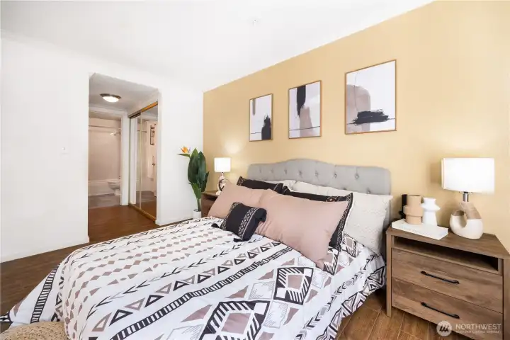 Beautifully refreshed 2-bedroom, 2-bathroom condo in the heart of Bellevue! This bright and inviting home showcases fresh updates throughout, including a brand-new kitchen and newly installed bathroom vanities. Durable hard-surface flooring ensures easy maintenance, while sleek stainless steel appliances and the convenience of an in-unit washer and dryer enhance everyday living. A private patio provides peaceful views, and the building offers elevator access and a well-equipped gym for added comfort. Nestled in a quiet, friendly neighborhood setting, yet just moments from everything Downtown Bellevue has to offer, this move-in-ready condo is the perfect combination of style, convenience, and low-maintenance living. NO Rental Cap