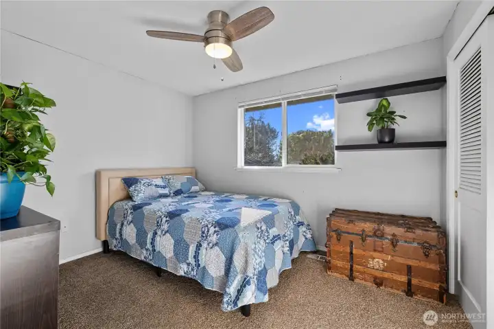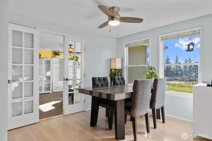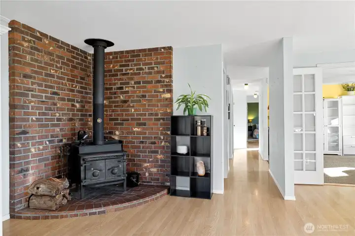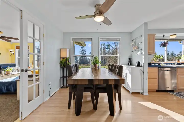 Experience the perfect blend of comfort and privacy in this tranquil home set on a park-like 0.57-acre lot. Located on a quiet street just on the edge of Oak Harbor, enjoy a peaceful setting while remaining close to town amenities. This home greets you with an abundance of natural light, balanced by cozy touches that make it feel warm and welcoming year-round. Step through elegant French doors into an inviting open kitchen designed for gatherings. Warm up by the cozy wood-burning stove or retreat to the spacious primary suite. Recent upgrades include a freshly remodeled bathroom with a deep soaking tub, a whole-house water filter and softener, and a new tankless water heater for added peace of mind. The spacious outdoor sanctuary is ideal for entertaining, gardening, or simply enjoying the lovely PNW surroundings. This island gem is ready for you to call home.