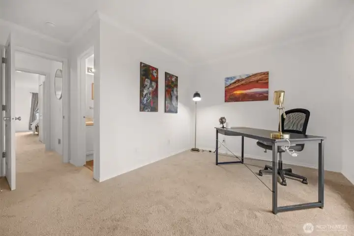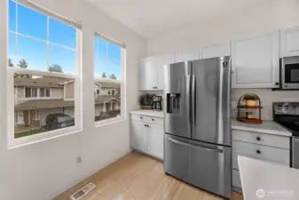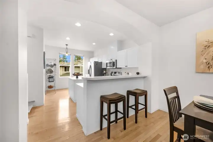 Beautifully maintained townhome in the desirable Ridge at Highlands East community! This bright and welcoming home offers an open-concept main level with soaring ceilings, large windows, and a cozy gas fireplace that anchors the living space. The kitchen flows into the dining area and living room, creating the perfect setup for everyday living and easy entertaining. Your private patio extends your living space as it backs to peaceful greenery, an ideal spot for morning coffee. Upstairs you’ll find your spacious primary suite with generous closet space and ensuite bath and a second bedroom with a full bathroom ensuite. You will also find the convenient laundry set up upstairs. This home features brand new carpet in the bedrooms. The private tandem two-car garage provides parking and a bonus space currently set up as a work shop or office, make sure to check it out. Enjoy a well-kept community near parks and playgrounds, just minutes to Willis Tucker Park, Mill Creek Town Center, and top-rated Snohomish schools.