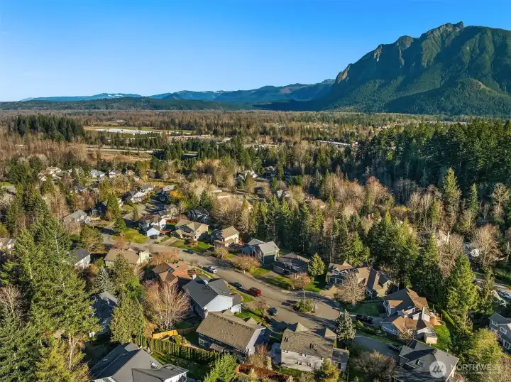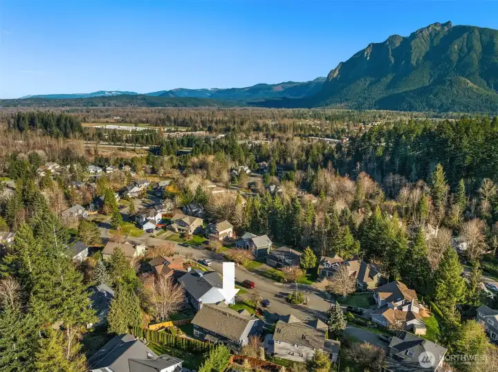 Elevated living in Forster Woods! This is the home upgrade you’ve earned! Start your mornings on the inviting front porch, coffee in hand, taking in peaceful mountain views and exchanging waves with friendly neighbors. In the evening, unwind in the (turf) terraced backyard—an ideal setting for a firepit, a glass of wine, or stargazing under clear skies. Inside, the thoughtfully designed, sprawling floorplan ensures no space is wasted and offers abundant storage throughout. The versatile main-floor den provides flexible options—perfect for a guest suite, multigenerational living, or a private home office. The neighborhood is known for the peaceful streets, well-kept homes, and spectacular views of Mount Si. Enjoy a true small-town atmosphere with easy access to parks, trails, and outdoor recreation right in town, while being just minutes from I-90 for convenient commuting or weekend adventures. Sidewalks, green spaces, and a welcoming vibe make it a place neighbors are proud to call home. Tucked away on a quiet cul-de-sac, this home offers the best of both worlds: serene living with a neighborhood park just around the corner for play, relaxation, and outdoor fun. Enjoy the lifestyle this lovingly-maintained home offers. You deserve it!