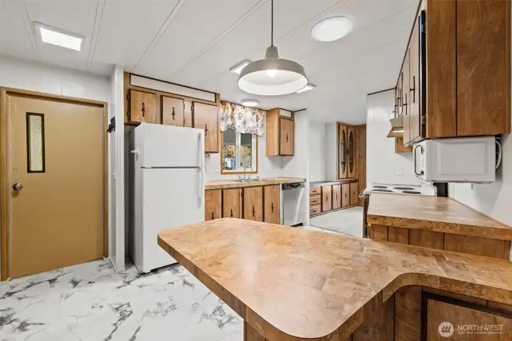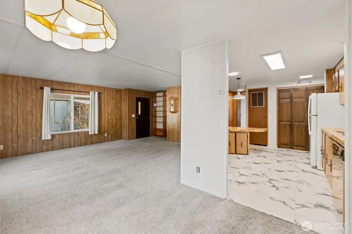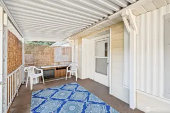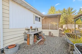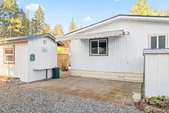 Your chance to own one of the best homes in Lazy Acres, conveniently located between Sequim and Port Angeles, across the street from Robin Hill Park and near the Olympic Discovery Trail! This 2BR 2BA home has been refreshed inside and out; new roof, vinyl windows, kitchen tile flooring, cabinet facing and fixtures, custom patio with retractable awning, fire pit, built-in outdoor BBQ counter, wine cooler, rock garden, potting bench and raised beds, strawberries, and lots of love and attention to detail. The huge carport is a great spot to park vehicles or use as an extra covered patio, and the front covered porch with electric fireplace is perfect for chilly or warm evenings. Three sheds are included for ample storage options, and the yard backs up to the park's green space, making this lot feel private and peaceful. Space rent is affordable and you can enjoy access to amenities and easy 55+ living. Move-in ready!