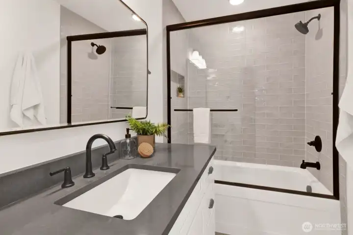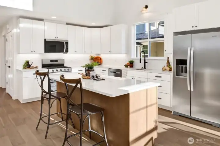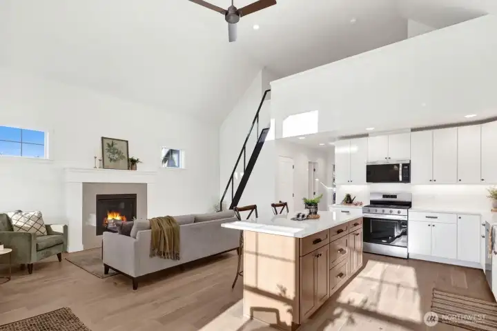 Chic, brand-new urban cottage in the new Sunset Commons neighborhood! This light-filled 2-bed, 1-bath home with an upper 255 sqft loft offers effortless open-concept living and modern style throughout. The kitchen pops with quartz counters, full-height tile backsplash, eat-in island, and stainless steel appliances, while the spa-inspired bath features matching quartz finishes and a fully tiled tub/shower. A private oversized garage with upper storage loft is a rare bonus. Enjoy low-maintenance living in Bellingham’s Sunnyland neighborhood, close to I-5 and an easy walk to downtown.