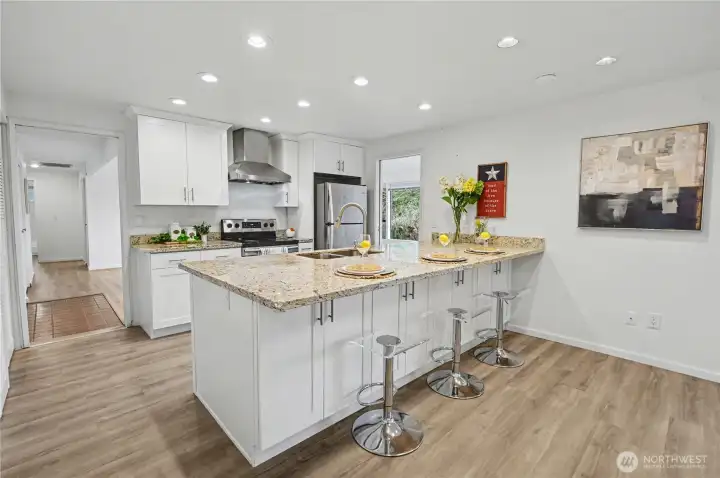 Newly updated beautiful 3 BD 2 BA rambler located in the highly-desired Tamara Hills neighborhood. Top Bellevue schools. Very good privacy. This home has an open and airy floor plan and has been updated with LVP flooring throughout the house. Kitchen and full bath were updated with new countertops and cabinets. 2 gas fireplaces. New interior paint, new fireplace finish, new lights and switches, new curtains. This home is perfect for entertaining with three sets of French doors leading out two spacious decks. French doors + windows facing West allows for plenty of bright, natural light. Keep it cozy with two gas fireplaces, or stay cool in the summer with central A/C. 2 car garage. Mature landscaping. Top-rated, award-winning schools! Quiet neighborhood. Easy access to grocery, highway, parks. Great home to move in. Pre-inspected.