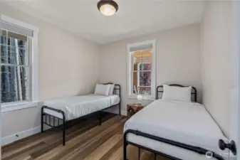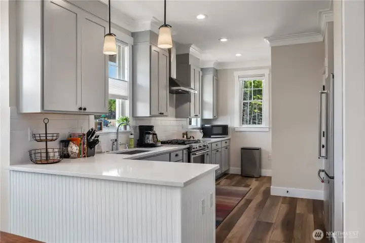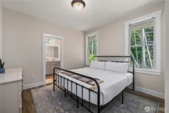Experience single-floor living with classic coastal charm, in this popular Trillium floorplan, located in Seabrook's Fernwood District. The inviting covered front porch offers a perfect spot to relax. This residence features two bedrooms and two bathrooms, ideal for all generations. The primary bedroom includes a private en-suite bathroom. The second bedroom is versatile, perfect for a guest room or a dedicated home office. The interiors open-concept design seamlessly connects the living, dining, and kitchen areas. A convenient mudroom, and back porch provides direct access to the outdoors, putting you steps away from mountain bike trails, Meadowview Park, and Fernwood Station. Sold fully furnished.