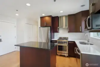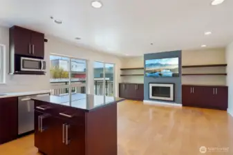 Tastefully remodeled and spacious 1-bedroom unit located on the 5th floor, welcome to the Nautica Condominiums! Open layout design with a wall of windows and a private deck with water views of SLU that spans nearly the full length of the home. Kitchen features a commercial grade convection gas stove, S/S appliances, and a mixture of white quartz and granite countertops. Solid cherry wood cabinets throughout, recessed lighting, and gas fireplace. Other features include in-unit washer and dryer, new hot water tank and carpets, and fresh paint. Full exterior building renovation completed in 2022. Minutes to the Space Needle, Climate Pledge Arena, and Downtown. Well funded & run HOA, pet friendly. Minutes to Mercer St, I-5 access with ample transit options. Call this one home!