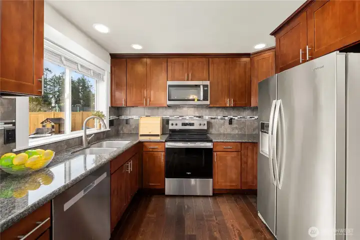Great curb appeal w/this "craftsman" Style 2 story home. Inside you will find a great flow with dining/living and a family roof off the kitchen/back slider. Hardwood floors, crown moldings, fans, carpets & custom white millwork & doors. "Gourmet" kitchen w island, slab granite counters/full backsplash. UPGRADED stainless appliances approx 1 year old. Formal din & living room plus spacious family room w/cozy FP-open plan! Primary suite w/tile surround walk-in shower and closet. Newer water heater, heat pump which means A/C!!, furnace, siding and ROOF all in 2020! Exterior painted in 2023. Large level backyard with territorial views and an oversized concrete slab for a future gazebo, play area etc. NO HOA. Walk to the high school!