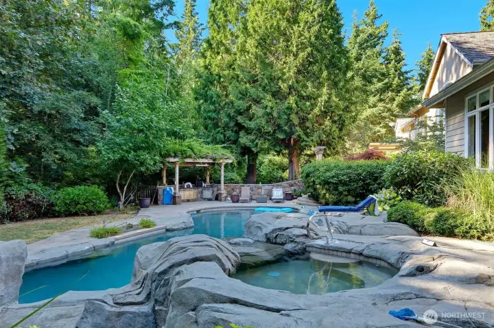 An estate in prestigous Pheasant Ridge. Grand soaring 2 story high ceiling in entrance, living and family rooms. Oversized primary bedroom suite in main opens to its own patio leading to park like back yard with large swimming pool, jacuzzi & waterfall. Magnificent wide stairs with wrought iron railing welcomes you to the upper level with bridge walkway to 3 more bedrooms and 2 bath. A big bonus room offers options for media and/or excise room. A 2nd stair next to kitchen provides added convenience Expansive center and side granite counter tops, high-quality stainless-steel appliances. A wonderful home for quiet living and joyful entertainment.