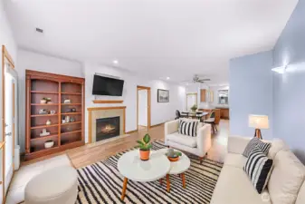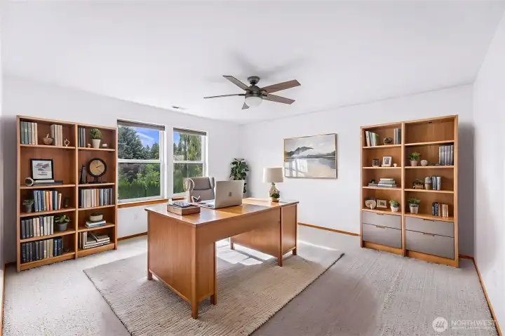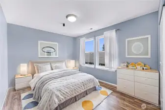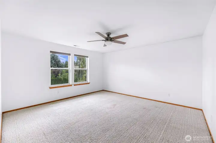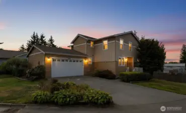 This beautifully maintained 4-bedroom, 3.5-bath home offers 2,390 sq. ft. of flexible living on a large corner lot with a fully fenced backyard. A standout feature is the rare dual primary suites, one on the main level and one upstairs, each with walk-in closets and private baths, ideal for multi-generational living or hosting guests. The light-filled main living area features an inviting electric fireplace, while the upper-level great room provides additional space for relaxing, working, or entertaining. The open kitchen is bright and functional with stainless steel appliances, an eating bar, and excellent flow to the dining and living spaces. Step outside to a spacious patio perfect for summer BBQs and gatherings. Recent interior paint adds a fresh feel throughout. Additional highlights include a laundry room with utility sink and an oversized two-car garage. A versatile floor plan, generous lot, and thoughtful layout make this home a standout opportunity.
