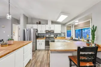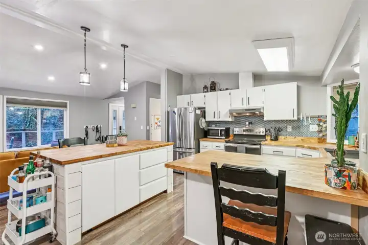 Tucked away on a quiet street in Sudden Valley, this versatile home offers a rare blend of income potential, modern updates and outdoor adventure. It features a fully separate downstairs apartment estimated to rent for $1,000/month by a reputable property manager—perfect for offsetting your mortgage, hosting guests, or multi-generational living. Step outside and discover and deck perched above the street and your own private trail winding up the property to the top of a leafy green ridge, where nature and privacy surround you. With protected greenbelt lots behind the home, your peaceful forest backdrop is here to stay. Thoughtful upgrades shine inside. The kitchen has been refreshed with beautiful new birch counters, a new dishwasher, and durable LVP flooring that flows through the living spaces for a clean, modern feel. Comfort and efficiency are top of mind with a ductless heating/AC system and participation in Puget Sound Energy’s Flex program. An installed ChargePoint 240V Type 2 electric vehicle charger makes daily life even more convenient for EV owners. Location seals the deal: just a five-minute drive brings you to the beaches of Lake Whatcom, while Sudden Valley amenities like two pools, trails, golf and tennis are close at hand. Whether you’re looking for a smart investment, a nature-forward lifestyle, or both, this home delivers flexibility, value, and a setting that’s hard to beat.