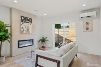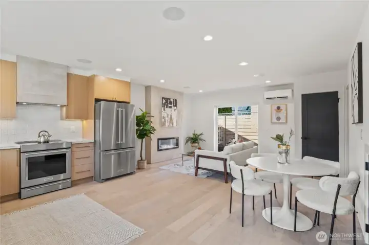 Affordable and thoughtfully designed, this home sits in the heart of a quiet Ballard neighborhood, just minutes from local shops and dining. Engineered hardwood floors and hemlock tongue-and-groove ceilings add warmth and character throughout, while large windows bring in abundant natural light. The kitchen features concrete plastered fireplaces and kitchen hoods and efficient, modern systems including a ductless heat pump for heating and cooling and a hybrid heat pump water heater. A dedicated parking spot adds everyday convenience, making this home a smart, comfortable option in one of Ballard’s most desirable locations.