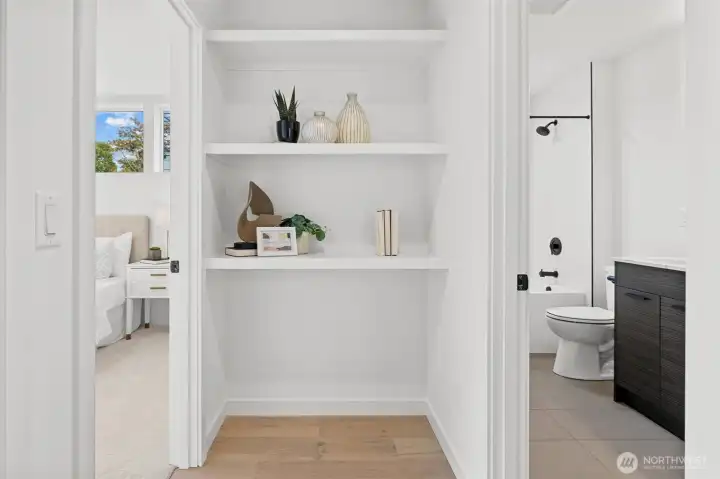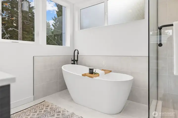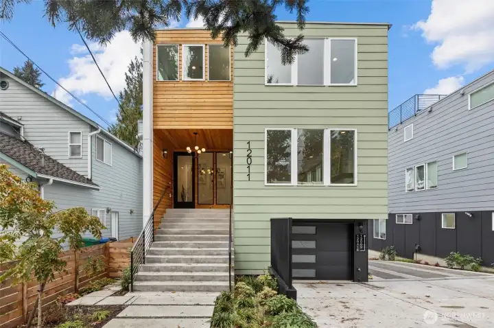 Flooded with natural light and custom touches throughout, this architectural masterpiece pairs contemporary aesthetics with meticulous craftsmanship at every turn. The spacious, open concept living area creates a seamless flow that is centered around a luxurious fireplace. The gourmet chef’s kitchen is a true showstopper, featuring premium stainless-steel appliances, an elegant quartz waterfall island, and custom cabinetry - all complemented by a convenient butler’s pantry for abundant storage. Retreat to the decadent primary suite, a serene sanctuary boasting a large walk-in closet with custom built-ins and a spa-inspired bathroom complete with a freestanding soaking tub, dual vanities, and designer tile. A versatile lower level bonus room is ready for the homeowner’s imagination. An expansive rooftop deck offers a private outdoor oasis with sweeping treetop views. Set along a quiet, tree-lined street, this home offers easy access to North Seattle’s top dining, shopping, and everyday conveniences just minutes away.
