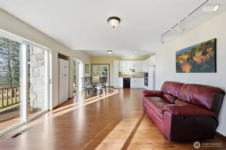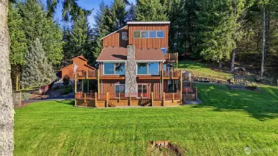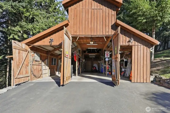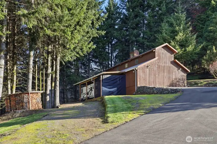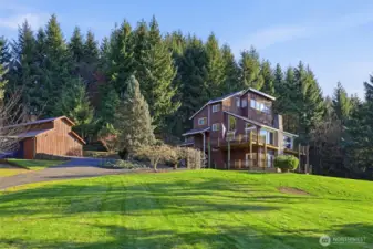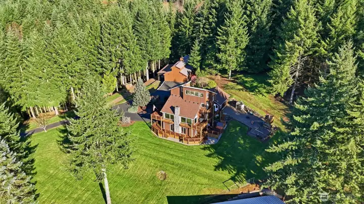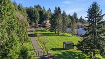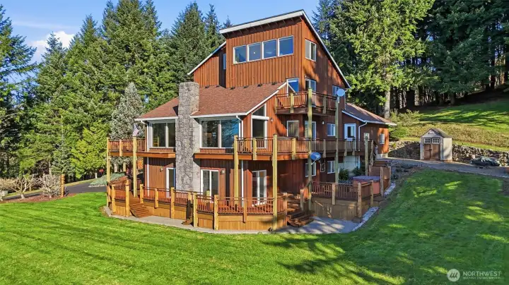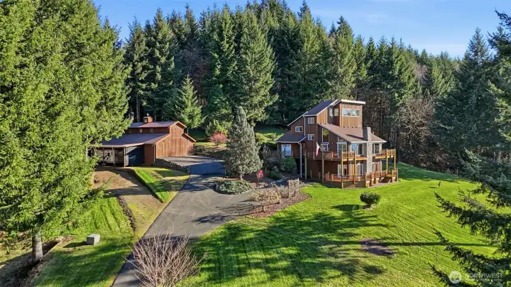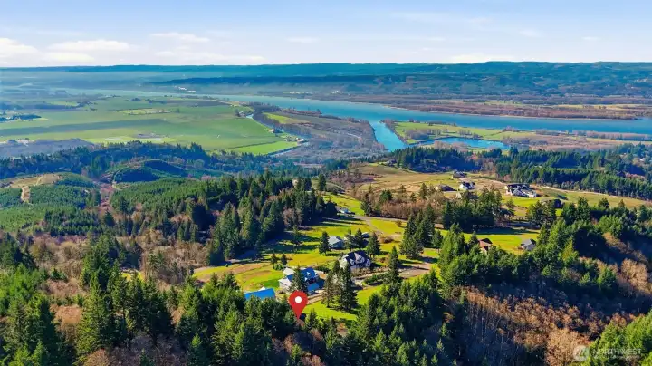 Wake up to sweeping Columbia River and valley views from this peaceful 3-acre Woodland retreat, where privacy, space, and natural beauty define everyday living. Tucked behind a gated entrance on a quiet private road, this fully fenced property offers a true sense of seclusion while remaining close to town. The main home is designed to capture light and river views from nearly every room. The upper loft provides a stunning vantage point—perfect for a home office, studio, or quiet escape. The rest of the main house features the primary bedroom and 2 additional bedrooms, formal dining room, living room, and a light-filled kitchen with cook island and cozy nook with quartz countertops. Refinished wood floors and abundant windows enhance the warmth and openness of the space, with multiple decks inviting you to relax and take in the scenery.The lower level offers a full ADU/second living space with private entrance, full kitchen, two bedrooms, full bath, and washer/dryer hookups, ideal for guests or multi-generational living, while still connected via interior stairs. The impressive 30’ x 60’ barn includes three bays and a lean-to, fully equipped with water and power. Whether you need space for RVs, boats, and toys or envision stalls and a hay loft for a working barn, this versatile structure enhances the functionality and appeal of this standout Pacific Northwest retreat.This is a rare blend of acreage, views, and flexibility just minutes from town. Don’t miss this opportunity.