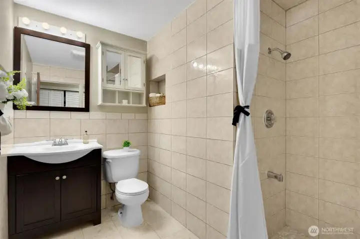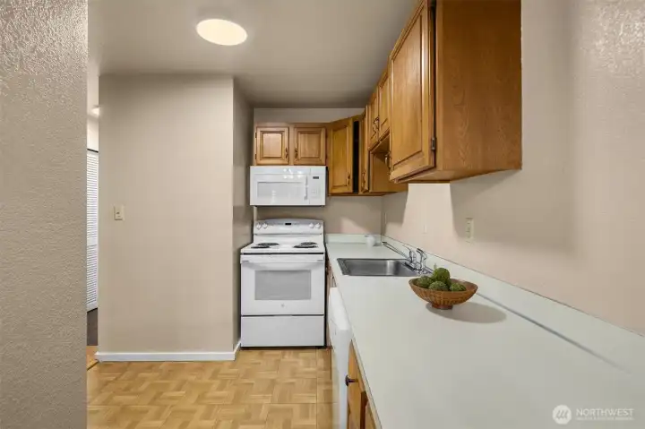 Enjoy the convenience and comfort of ground-floor living in this secure North Seattle community. This spacious 1-bedroom condo offers a thoughtfully designed open layout with generous living space, perfect for everyday living or entertaining. The oversized kitchen provides ample counter and cabinet space, making cooking and hosting effortless, while the large bathroom features tasteful finishes and a comfortable, functional design. The unit feels open and welcoming, with easy access to outdoor space—ideal for relaxing or enjoying fresh air without stairs. A perfect starter home or investment opportunity, this condo combines space, functionality, and value. Enjoy low HOA dues, on-site laundry, reserved parking, and no rental cap. Fantastic location with quick access to buses, I-5, light rail, restaurants, parks, and local markets. A rare opportunity to own a well-sized unit in a prime North Seattle location.