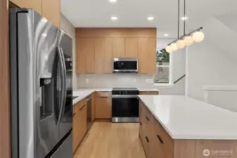 Experience the perfect blend of sophisticated design and everyday comfort in this spectacular new construction home. The spacious, light-filled open-concept living area features a luxurious fireplace and is designed for seamless entertaining and relaxation. Culinary enthusiasts will fall in love with the chef’s kitchen, which boasts high-end stainless steel appliances, elegant quartz countertops, and abundant storage provided by custom cabinetry. Retreat to the upper level to find a decadent primary suite designed as a true sanctuary. Highlights include the spa-inspired en suite bathroom and an enormous walk in closet. The second upstairs bedroom also includes its own ensuite bathroom and features abundant natural light. Complementing the EV-ready garage is an unbeatable central location with easy access to I-5 and north Seattle's many vibrant restaurants, shops, and parks.