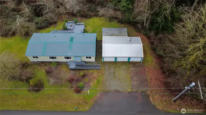 Freshly updated home in Delphi on a shy acre! 1,675sf home, oversized 3 car gar/shop, both with metal roofs! 3 bed + office/2 full bath w/great living spaces, all new appliances, countertops & island, new carpets and laminate flooring, new lighting, vaulted ceilings & big eat in kitchen, plus easy access to formal dining w/slider to deck & backyard. Primary has walk-in closet, 5 pc. bath, walk-in tub & newer shower. Large multi-level deck w/seating and firepit. On your own private well, no HOA's. Surrounded by trees offering tons of privacy and ample parking. Close to town and all amenities. (Accessible entrance, and primary suite bath with separate walk-in shower.)