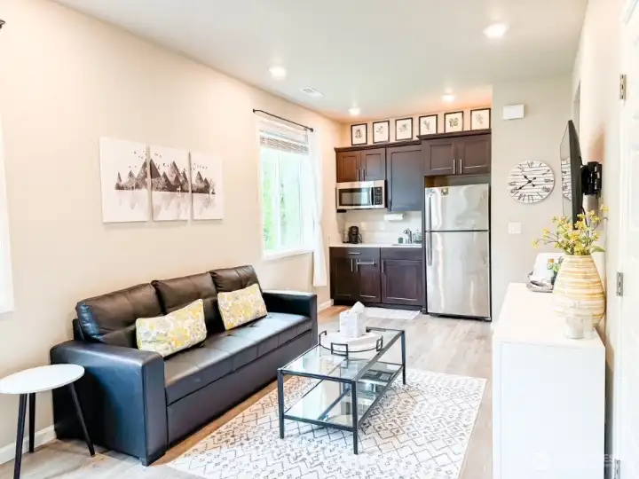 Welcome to your new home on an extra-large corner lot with a no maintenance front yard (maintained by HOA) and an all-season turf backyard—perfect for year-round play, pets, and entertaining! This beautifully designed Lennar home features a private Next Gen® suite with its own entrance, living area, kitchenette, bedroom, and full bath—ideal for multigenerational living, guests, or a dedicated home office. The open-concept layout includes new light fixtures, a modern kitchen with stainless steel appliances, large island, walk-in pantry, and generous living and dining spaces. Upstairs, the luxurious primary suite offers a spa-like en-suite bath, oversized walk-in closet, private balcony, and a cozy reading nook or office. Three additional bedrooms, a spacious loft, and central A/C complete the package! Home is within walking distance to both a Safeway and new elementary school being built. HOA dues include high speed internet and front yard maintenance.