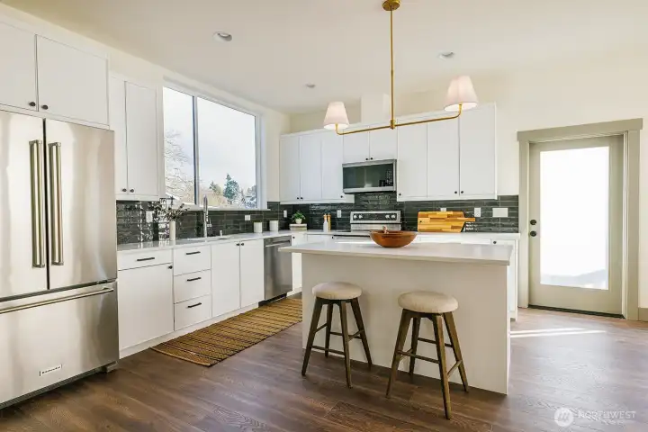 "CLOSING CREDITS AVAILABLE ask for details." Now selling- Dakota Townhomes, Unit 8: A bright and stylish new construction end unit designed for real modern city living. This 1670 sq ft, 3-bedroom home is filled with natural light thanks to oversized windows and an end-unit layout that feels open and airy from the moment you walk in. The main floor is built for real life, featuring an XL laundry and pantry room that makes storage, groceries, and everyday routines effortless. Upstairs bedroom offers a Mount Rainier view-- a rare and very PNW bonus. Primary bedroom comes move-in ready with blackout blinds, and primary bath with extra storage cabinet. Enjoy the convenience of one assigned EV ready off-street parking space, plus smart features like a Ring doorbell and all included appliances-fridge/washer/dryer. Step outside and you're instantly connected to everything that makes city living fun --coffee spots restaurants, transit, and neighborhood favorites --all just minutes away!