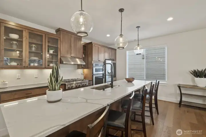 Seize the opportunity to enjoy elevated living with comfort, style, & convenience in the coveted Cascade Canyon Neighborhood. Rising above the rest w/ stunning mountain views and exceptional craftsmanship, this 5-bed contemporary home is impeccably maintained & upgraded throughout, it offers true move-in perfection. Highlights include hardwoods throughout, chef-inspired kitchen with waterfall counters, a tiled spa-inspired ensuite, designer finishes, A/C, EV charger, & whole-house Generac generator for peace of mind. The versatile lower level is ideal for multi-generational living, overnight guests, or live-in Nanny. Outdoor living boasts a covered patio, terraced & private backyard with sweeping views, as well as river & trail access just steps away. Come see what North Bend has to offer!
